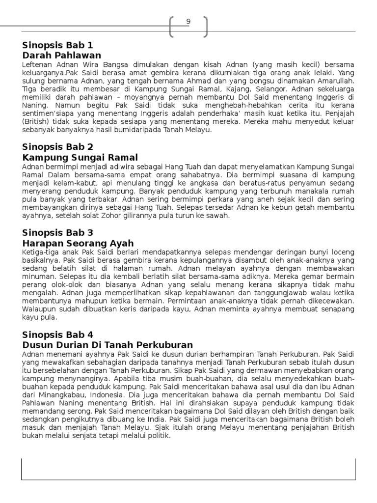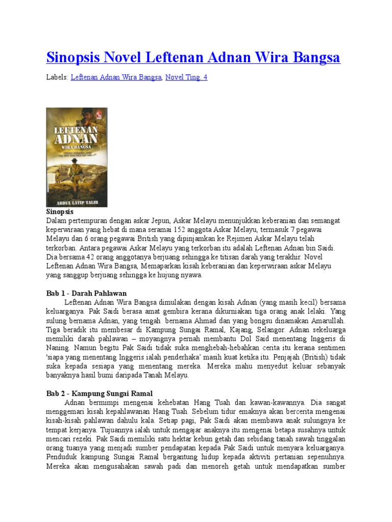Sinopsis Novel Left Adnan Bab Sinopsis Novel Leftenan Adnan Wira Bangsa Ikut Bab Sinopsis Novel Studocu